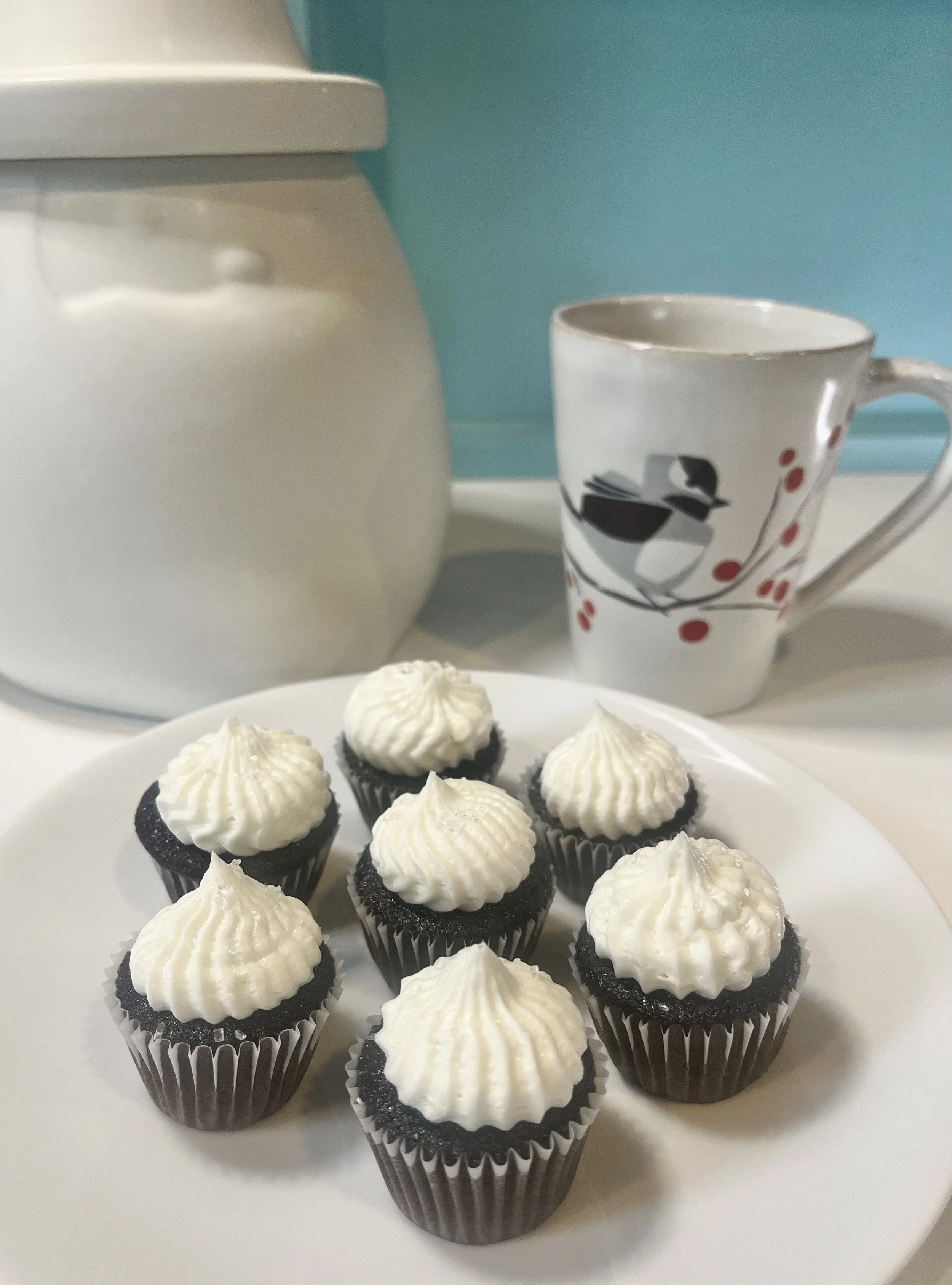 In years past, I’ve made chocolate-mint fudge, as well as chocolate sugar cookies with peppermint in the cookie as well as the icing, and we keep a bottle of Peppermint Schnapps in the house solely for spiking hot chocolate. But when I decided to turn the delightful combo into cupcakes to take to a holiday gathering, well, let’s just say it made me feel like a kid and believe in the magic of Christmas all over again.